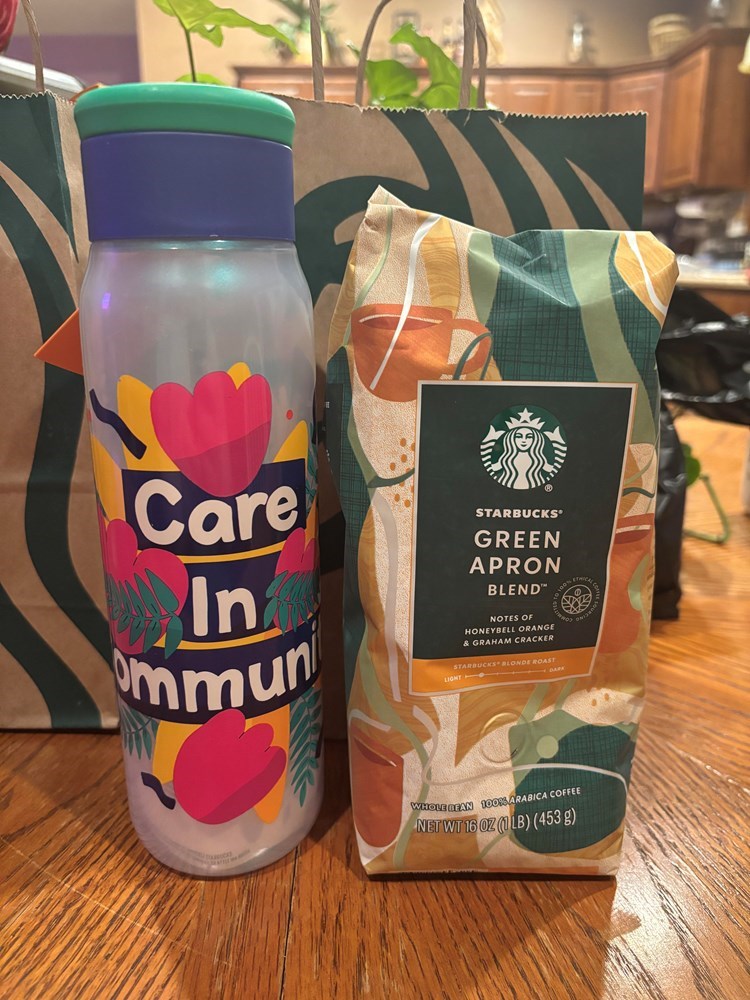 Ground Coffee and Water Bottle from Starbucks. $25 value.